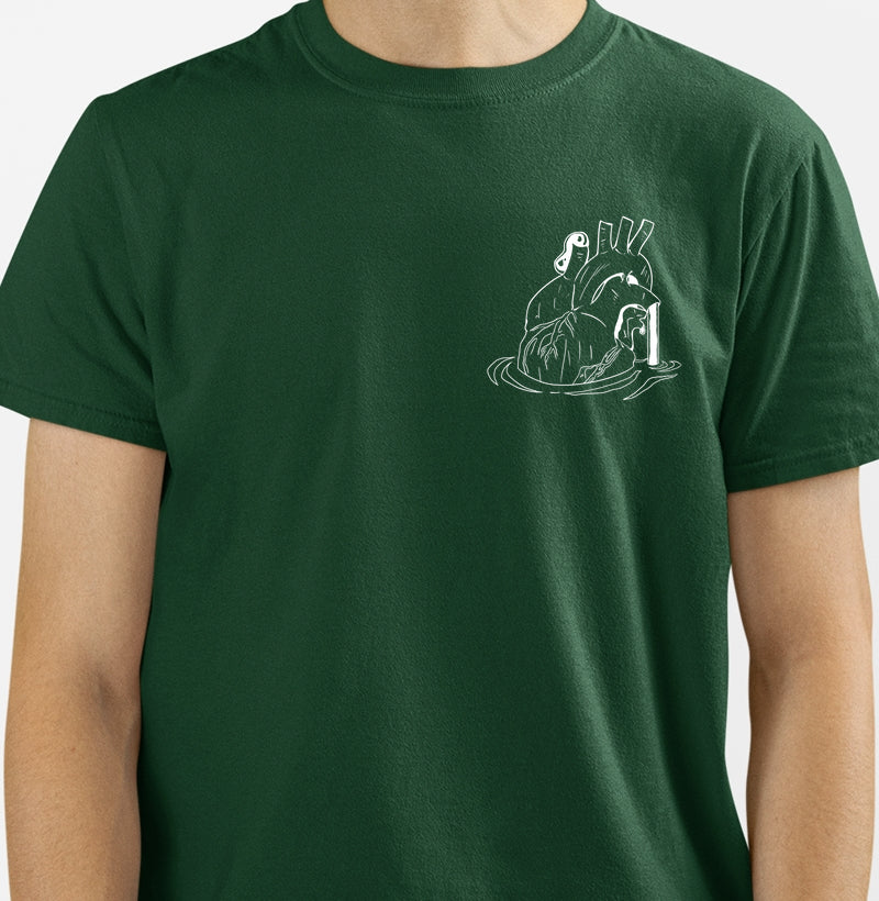 Eu tinha uma vontade de fazer meu album de poemas, mas nunca fui em frente. Fiz a arte que era um coração sem cor com uma caneta de tinta cravada na carne. Mostrei à Caeté a minha ideia descartada e ele gostou - apenas simplificamos um pouco.