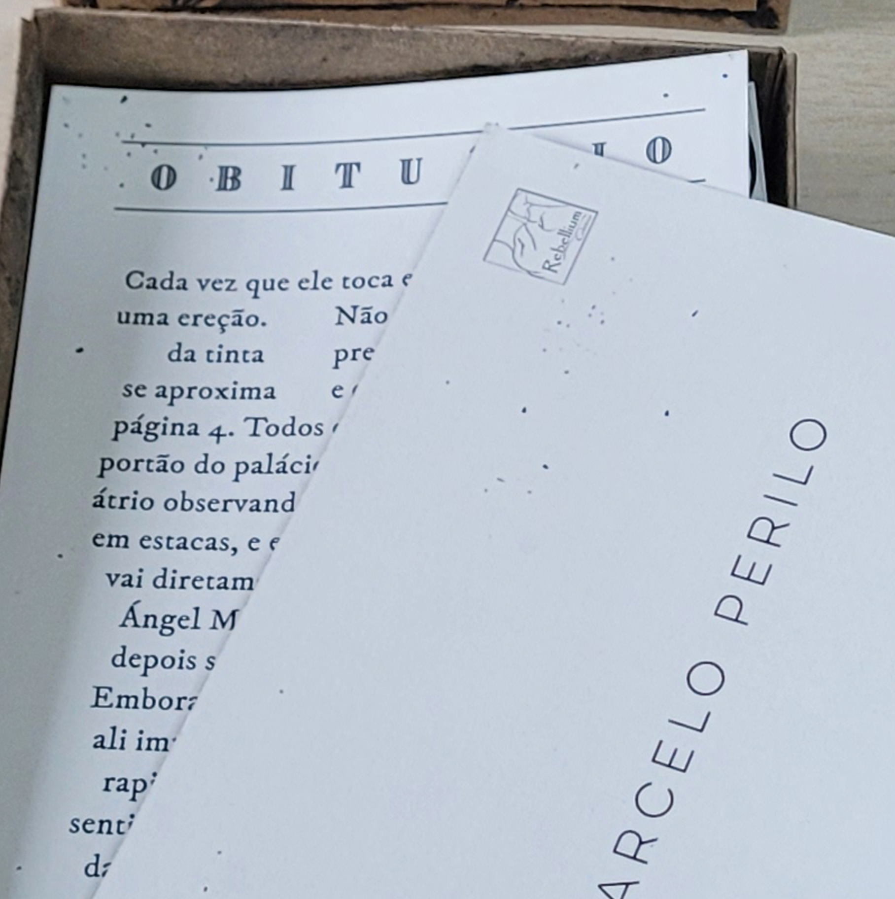 “Obituário” é uma obra literária que abriga 7 contos. As narrativas ficcionais curtas são apresentadas em folhas avulsas, ou seja, sem cola, costura ou grampo.