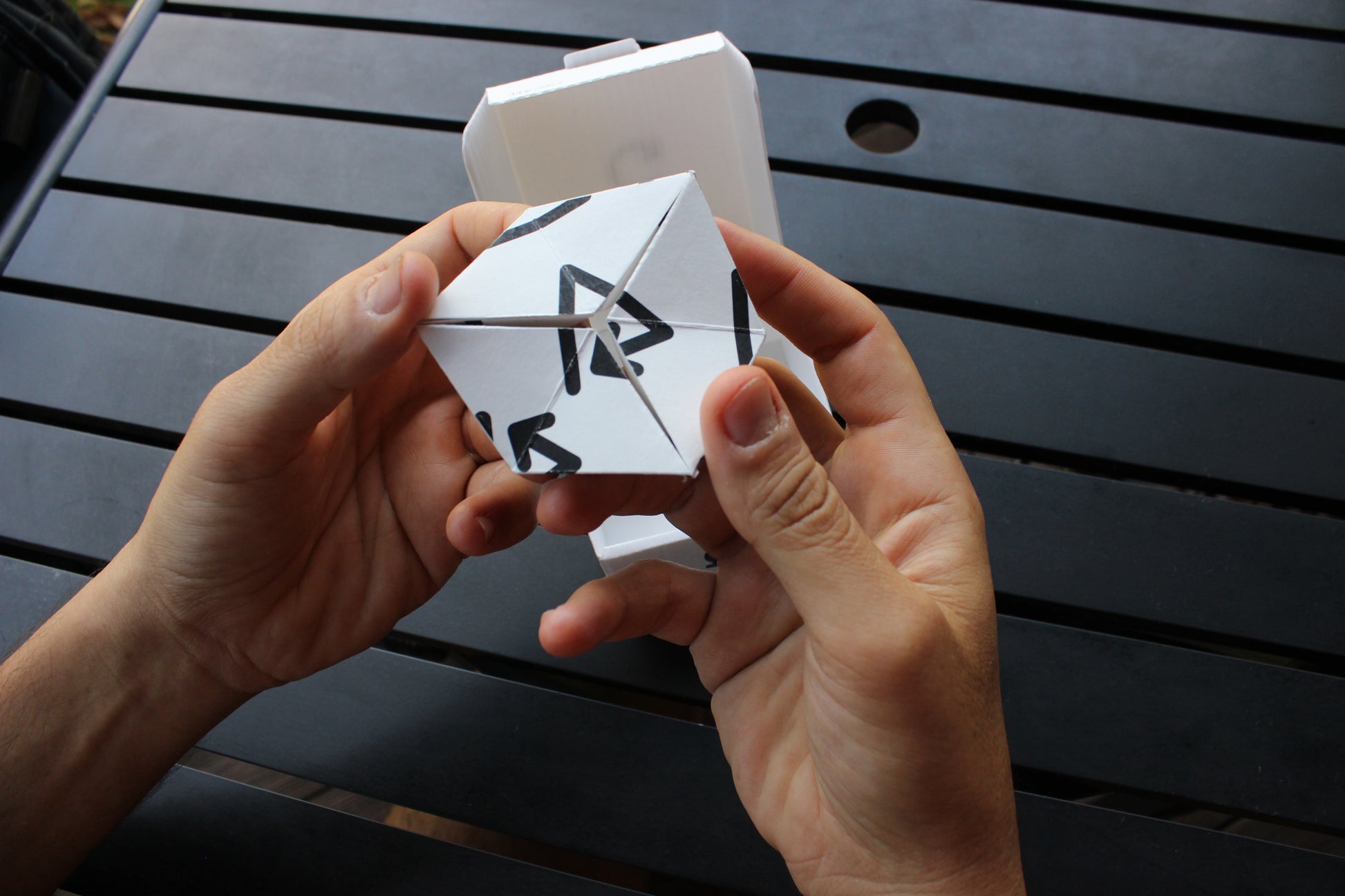 RODAGIRA é um poema-objeto. Sua forma é de um caleidociclo, brinquedo tridimensional composto por 6 tetraedros que revela diferentes desenhos ao ser manuseado. O poema-objeto vem dentro de uma caixa com o título carimbado com letras em forma de setas, indicando o movimento e a circularidade propostos na obra. Para além das palavras que compõe o título, RODA e GIRA, outras combinações de letras e palavras podem surgir a partir do sentido e movimento com que se interage com o objeto, tornando-o um poema aberto à ação de quem lê. Literalmente, para ser lido com a mão. A multiplicidade de sentidos e o movimento presentes no desenho das letras e na estrutura desse trabalho fazem referência a espiralidade do tempo e a circularidade da vida, ideias caras ao pensamento afro-diaspórico e das culturas tradicionais. Suas formas, ideias, cheiros e texturas são um convite à poesia que é verso e reverso, causa e efeito, torto e direito, que é o que é.